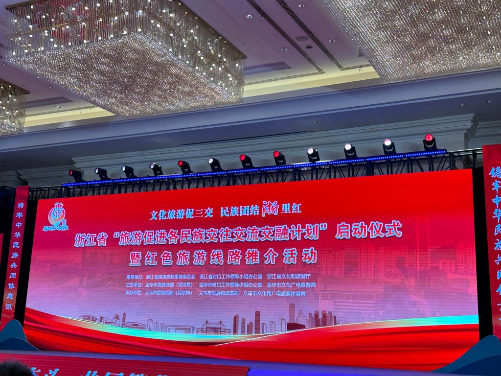 8月17日下午,浙江省“旅游促进各民族交往交流交融计划”启动仪式暨红色旅游线路推介活动在义乌市幸福湖国际会议中心召开,省委统战部副部长鲍秀英、金华市委常委、统战部部长王志强、义乌市委常委、统战部部长贾以鸣等领导出席,ballBET贝博BB艾弗森党委负责人、创意园相关负责人受邀参加本次活动。