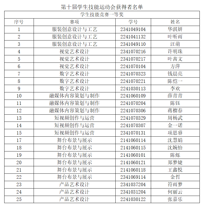 2023年12月7日学校举办了义乌工商职业技术学院第十届学生技能运动会。ballBET贝博BB艾弗森紧密对接教育部、省高职院校职业技能大赛、省大学生科技竞赛、人力资源和社会保障部一类竞赛、教育部1+X证书、人力资源和社会保障部职业技能等级证书和职业(执业)资格证书,设置了8个赛项10个赛道,经过宣传发动、赛前指导、班级初赛、学院复赛决赛等环节,经专家打分评定,此次技能竞赛周杨武等25人获一等奖,152余名学生在此次技能运动会中获奖,现予以公布。